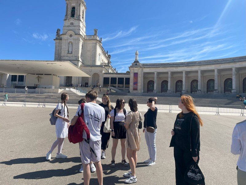 We wtorek obudziliśmy się wcześnie rano, hm..., nic dziwnego. Godzina 6:00. Celem podróży była stolica Portugalii- wielkie miasto Lizbona. W drodze do Lizbony zatrzymaliśmy się w wyjątkowym miejscu - Sanktuarium Fatimskim, które jest celem pielgrzymek ludzi z całego świata ze względu na objawienia z roku 1917. Było to dla nas wielkie przeżycie, którego nigdy nie utracimy.