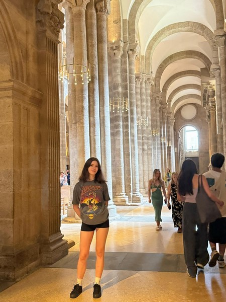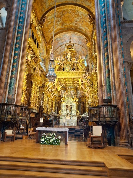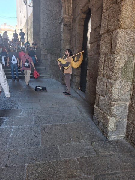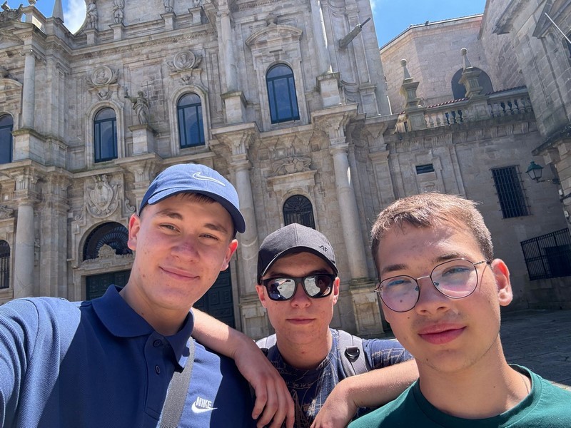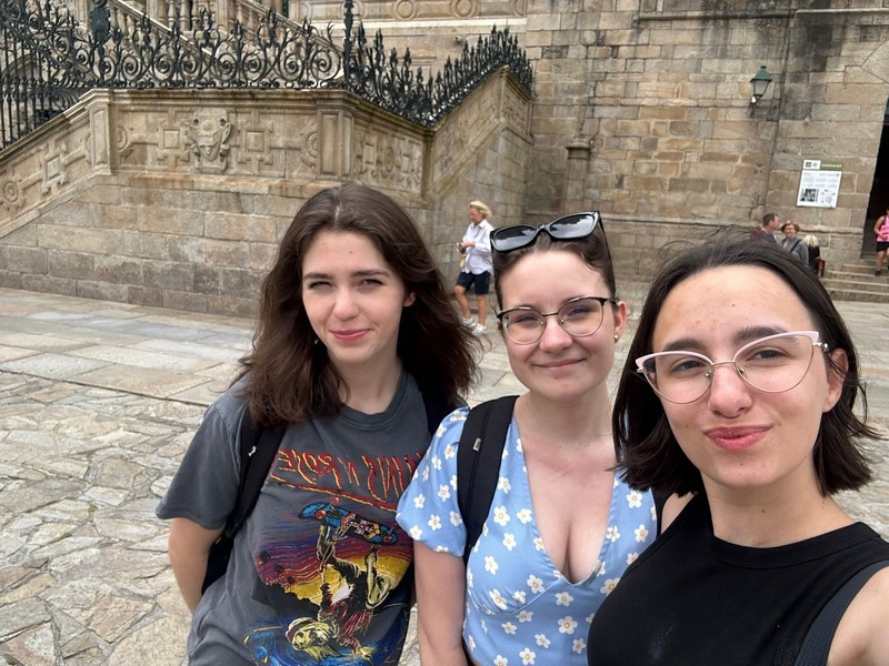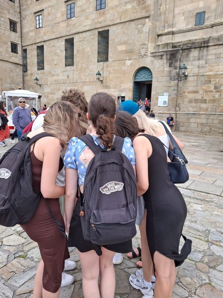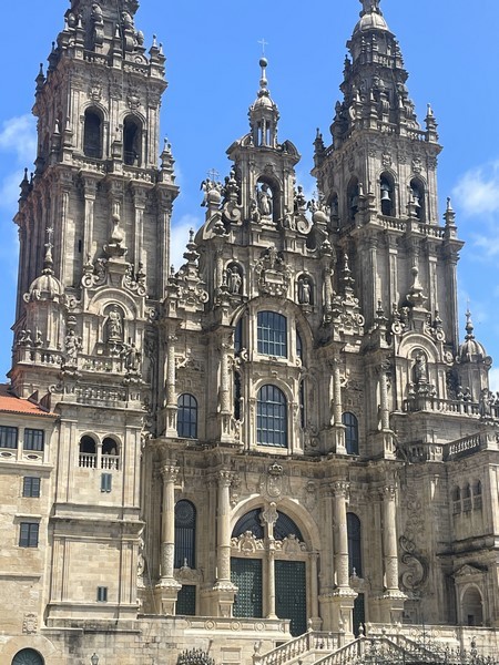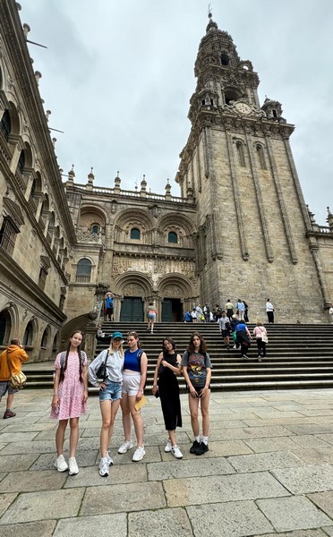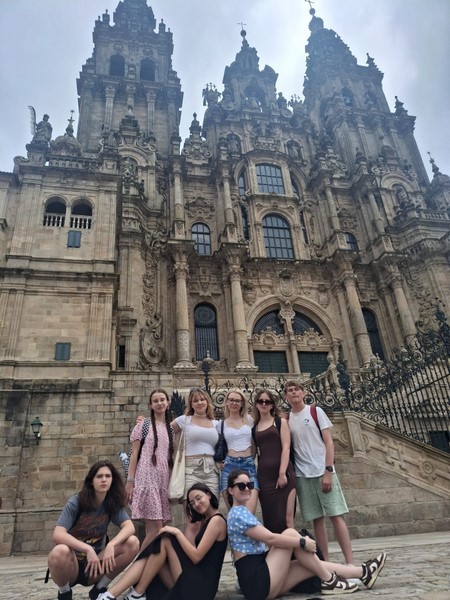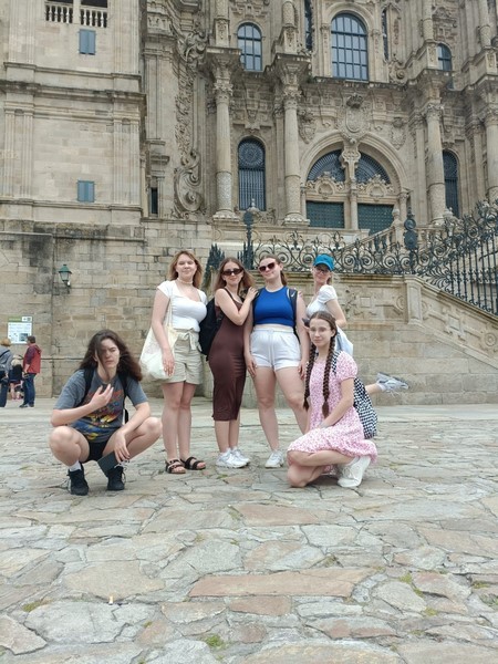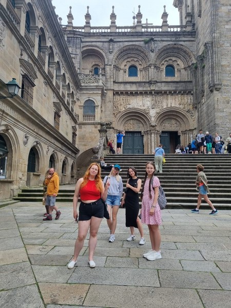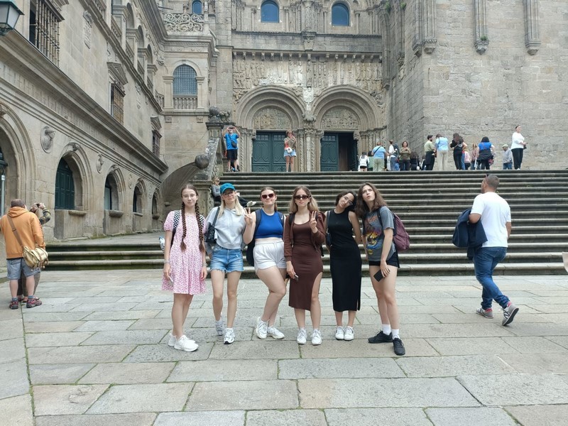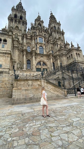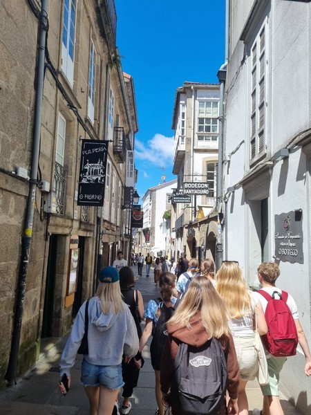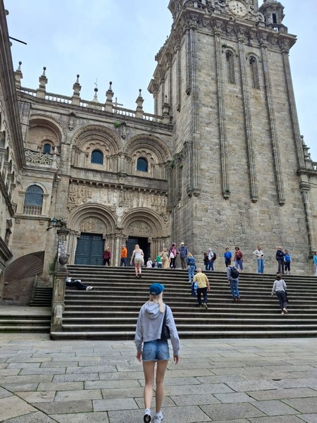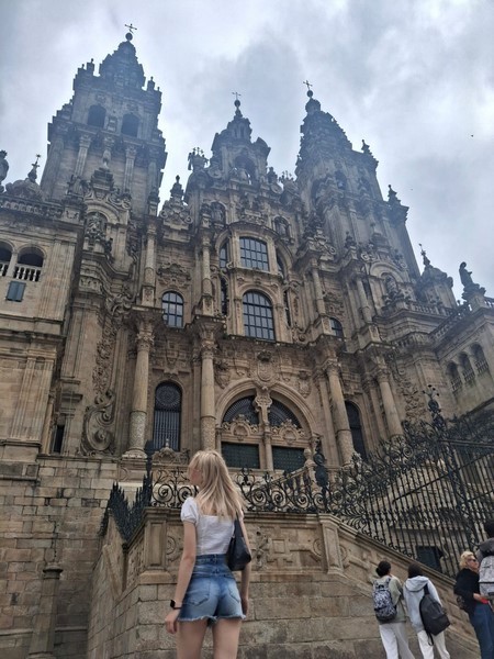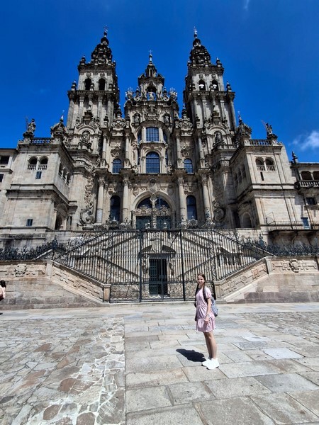 Byliśmy zaskoczeni rozmachem i majestatem otaczających nas budynków, szczególnie katedry, w której znajdują się relikwie św. Jakuba. To malowniczo położone miejsce od średniowiecza jest celem pielgrzymek religijnych. To tu właśnie zbiegają się szlaki pielgrzymek śladami św. Jakuba apostoła. Zespół zabytkowy Santiago de Compostela znajduje się na liście UNESCO.
