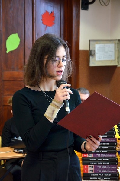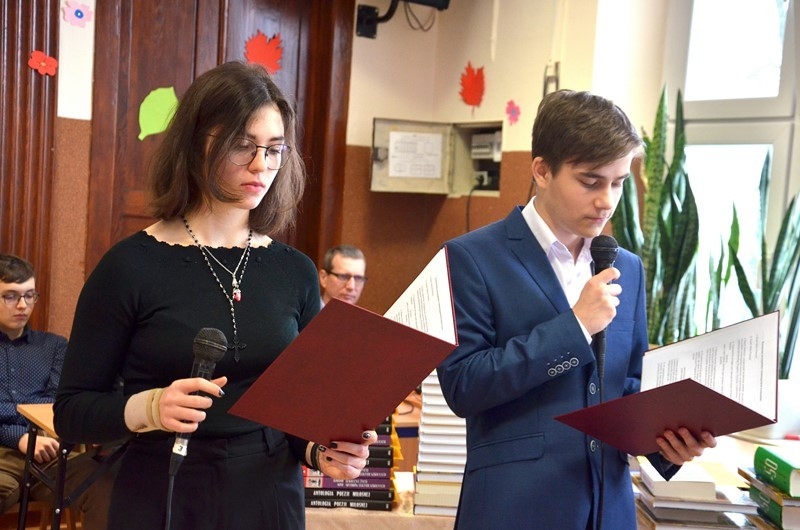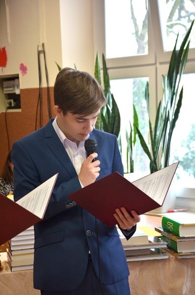 Uroczystość rozstrzygnięcia konkursów uświetniła Kornelia Kruk z klasy 3d i jej mistrzowskie wykonanie Ballad i romansów Adama Mickiewicza. Uroczystość poprowadzili uczniowie: Aleksandra Wilkos i Julian Szabat również z klasy 3d.