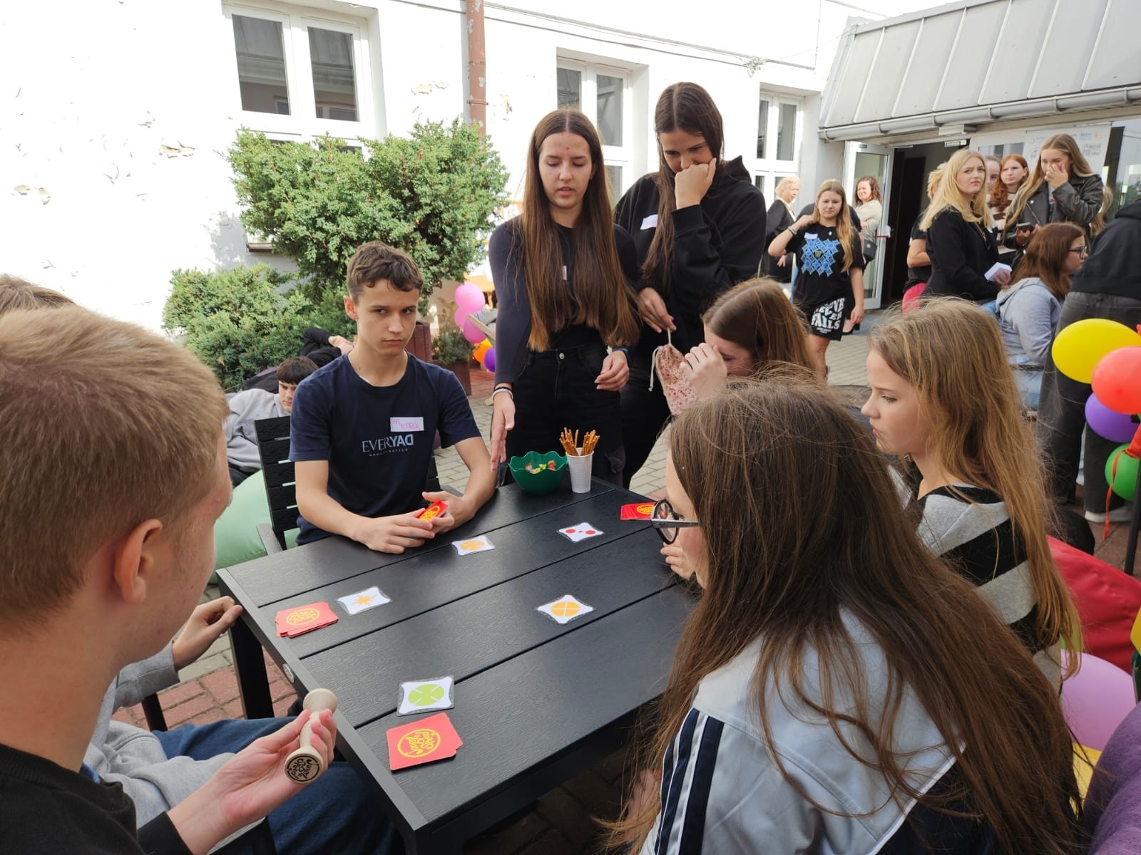 Z okazji inauguracji SOR’u uczniowie klas pierwszych rozegrali turniej gier towarzyskich: Jungle Speed, Dobble oraz Uno. Swoim młodszym kolegom z zaangażowaniem kibicowali uczniowie klasy IIC, którzy dali się ponieść atmosferze zabawy i przyłączyli się do gry. Wszyscy uczestnicy zostali obdarowani drobnymi upominkami.