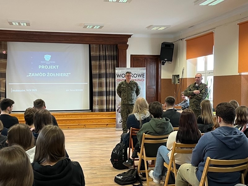 14.04.2025 r. odbyło się spotkanie z przedstawicielami wojska polskiego w ramach projektu „ZAWÓD ŻOŁNIERZ”. Młodzi ludzie dowiedzieli się, na czym polega codzienna służba żołnierza, jakie są wymagania rekrutacyjne oraz możliwości kariery w wojsku. Poznali zasady działania różnych formacji. Spotkanie było inspirujące i przybliżyło realia zawodu żołnierza.