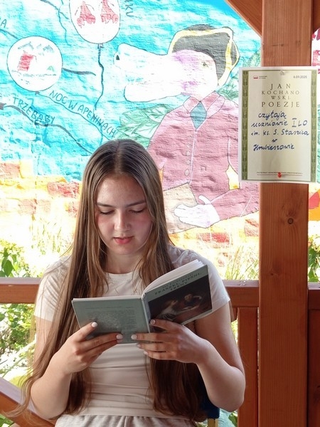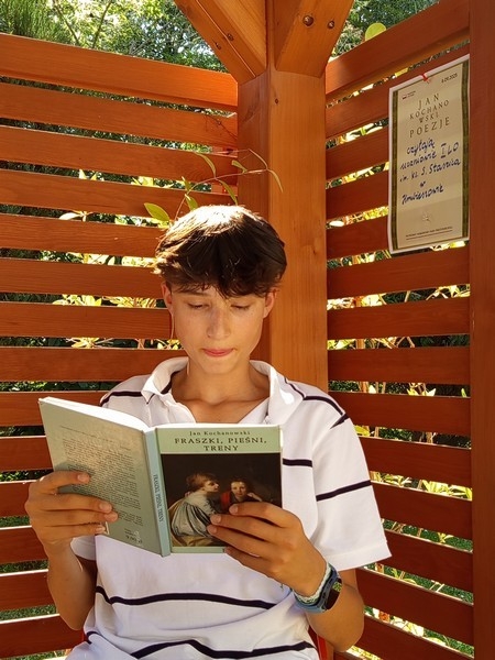 Przez radiowęzeł czytano fragmenty poezji Jana Kochanowskiego, podczas lekcji języka polskiego uczniowie wraz z nauczycielami na nowo odkrywali piękno dawnej polszczyzny i ponadczasową mądrość ojca polskiej poezji. Klasa III a, korzystając z wakacyjnej pogody, urządziła "czytanie w altanie": "Pieśni" i "Fraszki" Kochanowskiego czytali: Ania, Kacper, Maciek, Krzysiek i Patrycja.