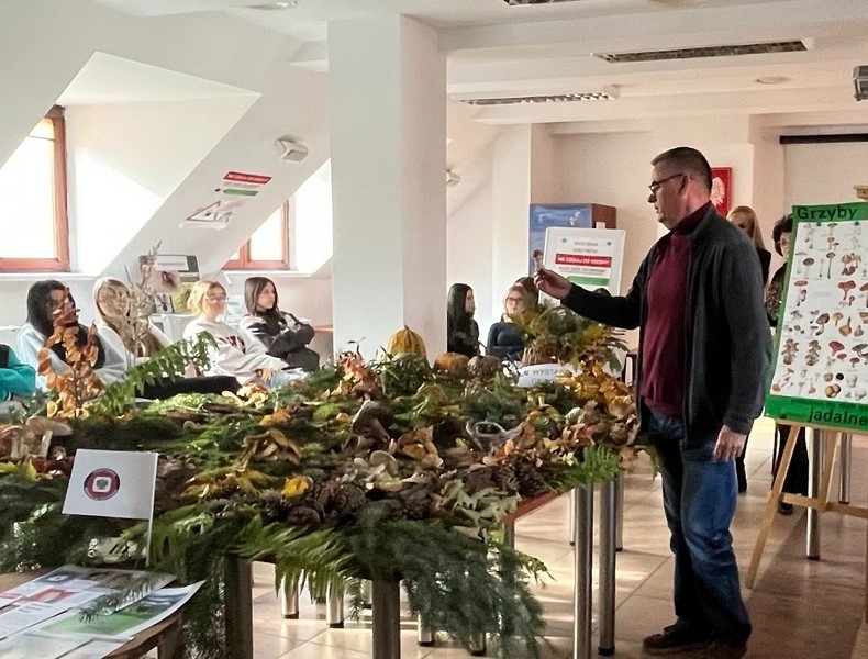 Pracownik Stacji, Pan Jacek Kamiński w ciekawy i przystępny sposób przybliżał tajniki wiedzy o grzybach. Uczniowie dowiedzieli się, jak rozpoznawać grzyby jadalne i odróżniać je od gatunków trujących, a także na co zwracać uwagę, aby grzybobranie było bezpieczne i przyjemne.
