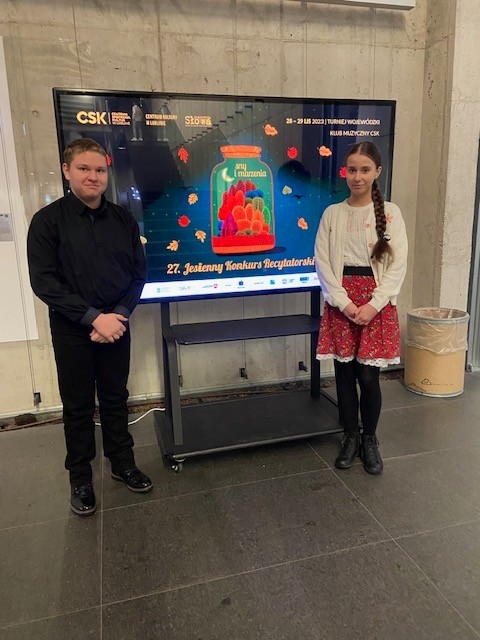 Wśród nich znaleźli się nasi młodzi miłośnicy poezji - uczniowie I Liceum Ogólnokształcącego im. ks. Stanisława Staszica. Kornelia Kruk z klasy IIID oraz Kacper Kalemba z klasy IB, w dniu 29 listopada 2023r. reprezentowali powiat hrubieszowski. Wymagające jury Konkursu dostrzegło wyjątkowy talent recytatorski Kacpra i przyznało mu wyróżnienie w kategorii szkoła ponadpodstawowa. Instruktorem naszego laureata jest Pani Alicja Borkowska. W sposób niezwykle wrażliwy zaprezentowała się jego koleżanka Kornelia, którą do występu przygotowywała Pani Katarzyna Krotkiewicz. Uroczyste wręczenie Kacprowi wyróżnienia i jego występ w Koncercie Laureatów odbył się 6 grudnia b.r. w Sali Kinowej w Centrum Kultury w Lublinie.