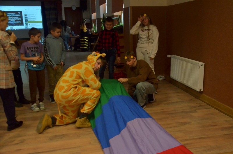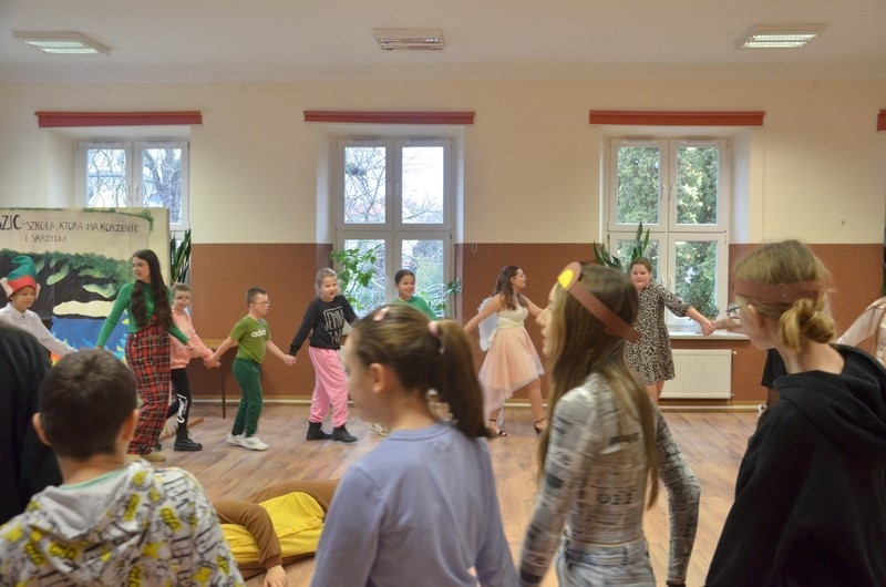 Tegoroczny spektakl opowiadał o przyjaźni i pomocy. Scenariusz przygotowali uczniowie wcielający się w postacie bohaterów (Natalia Ferenc, Weronika Kruk, Lena Maciejewska, Iga Wilgos, Arkadiusz Dudek, Patrycja Krupińska, Hanna Korolska). O rekwizyty zadbały Zuzanna Sender, Oliwia Wojda i Martyna Zubko. Oprawa muzyczną i akustyczną zapewnili Aleksander Kowalik, Karol Szabat i Paweł Budzyński. Po części artystycznej z uśmiechem zabraliśmy dzieci do wspólnego malowania oraz słodkiego poczęstunku. Zabawa z chustą animacyjną oraz przechodzenie przez tunel to jedne z wielu zabaw, w których dzieci brały udział wraz z towarzyszącymi im licealistami.