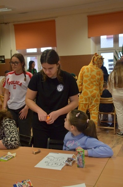 Uczniowie klasy I C przy wsparciu przedstawicieli kl. II D pod opieką p. Anny Pękowskiej (wych. kl. I C i opiekun Szkolnego Koła Wolontariatu), p. Joanny Lis (wych. kl. II D) oraz p. Jolanty Korneluk (pedagog szkolny), przygotowali wspaniałe przedstawienie oraz umilali czas gościom zorganizowanymi atrakcjami.