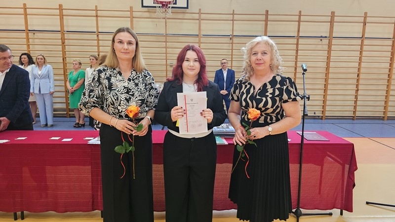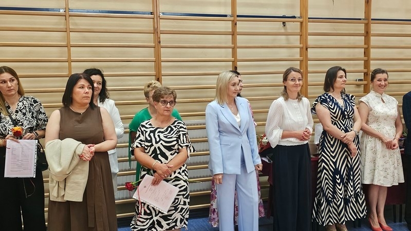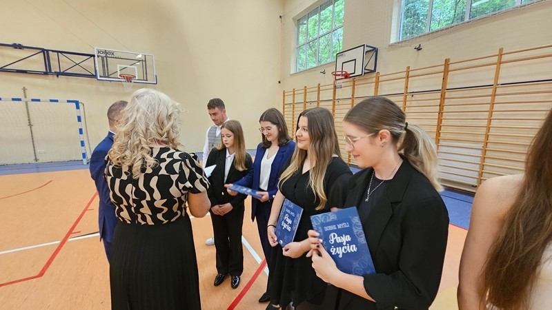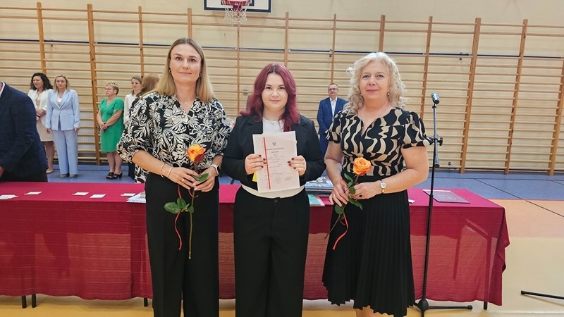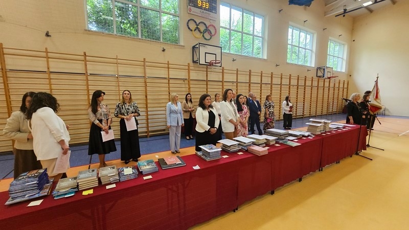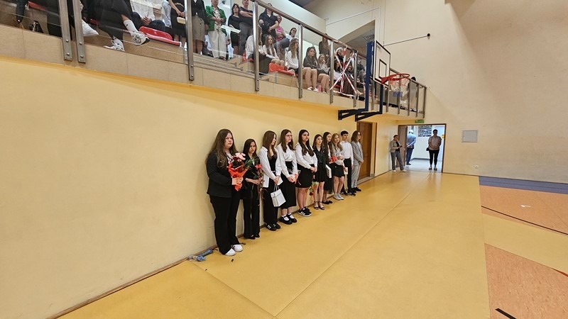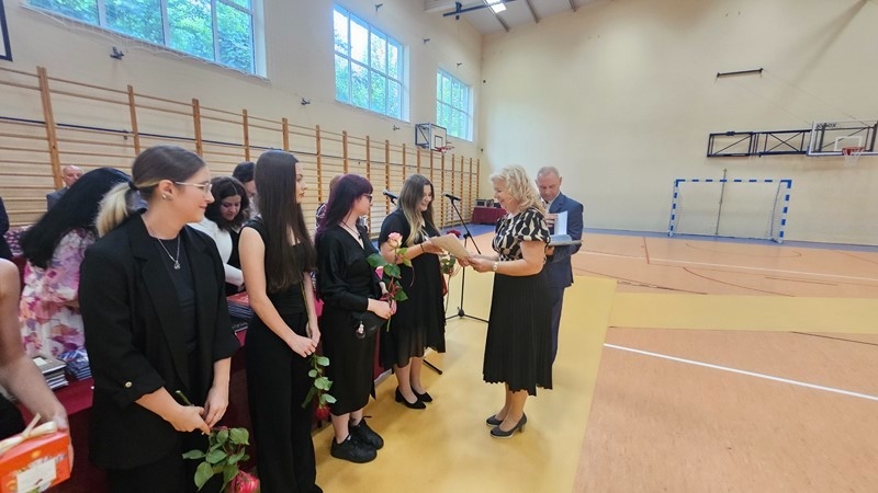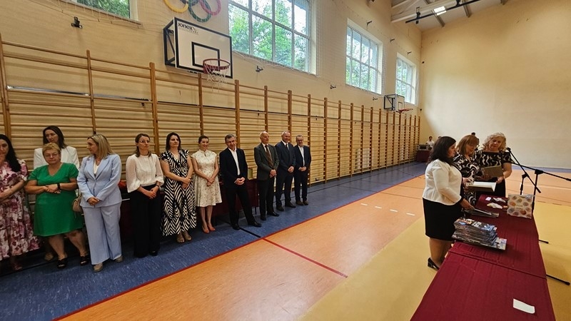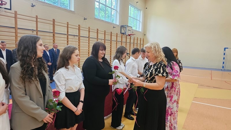 Szczególnym momentem było podziękowanie za 32 lata pracy pani Wiesławie Banaszkiewicz, szkolnej pielęgniarce. Dyrekcja oraz uczniowie podziękowali pani Wiesławie za troskę, oddanie i serdeczność, które przez lata towarzyszyły jej codziennej pracy. Pani pielęgniarce wręczono bukiet kwiatów, a cała sala nagrodziła ją pełnymi wdzięczności zasłużonymi brawami.