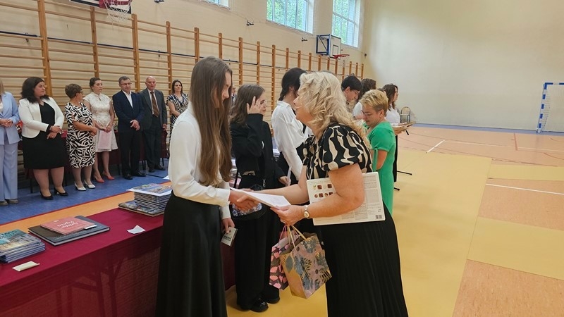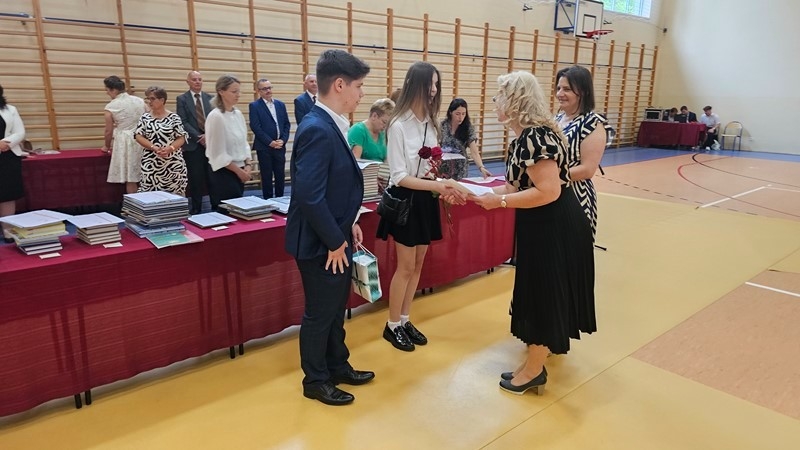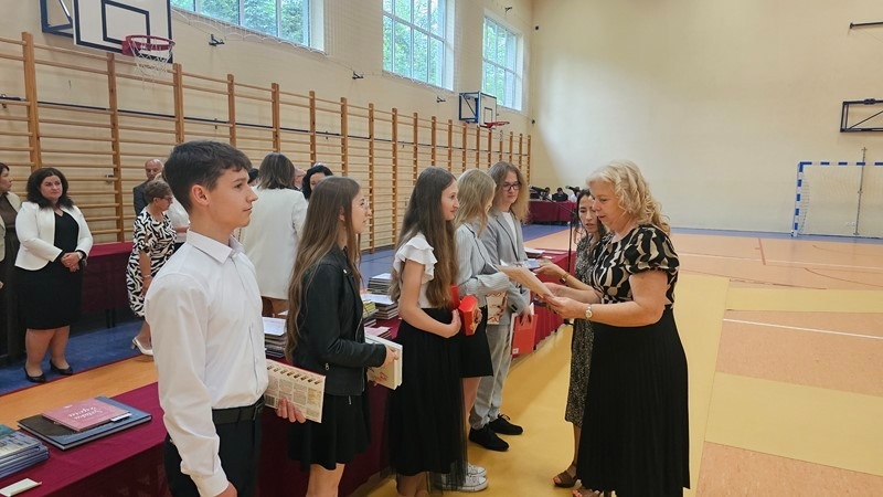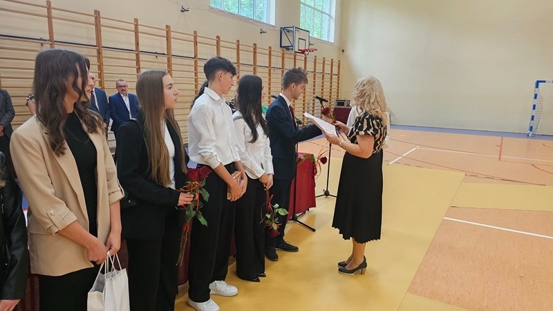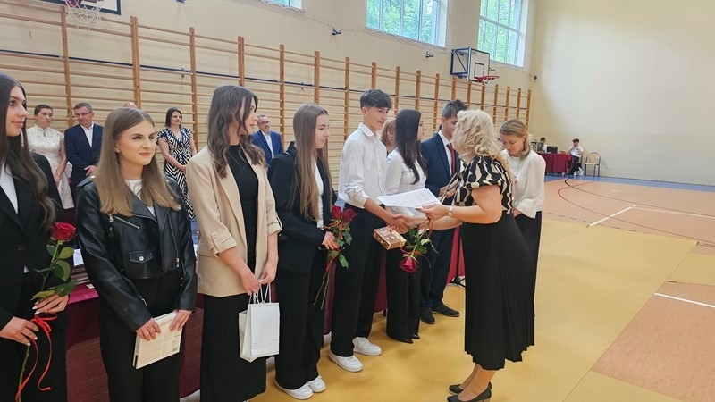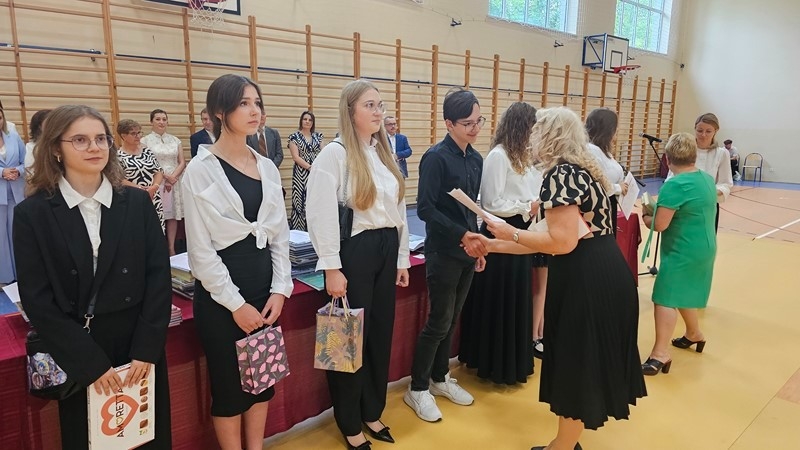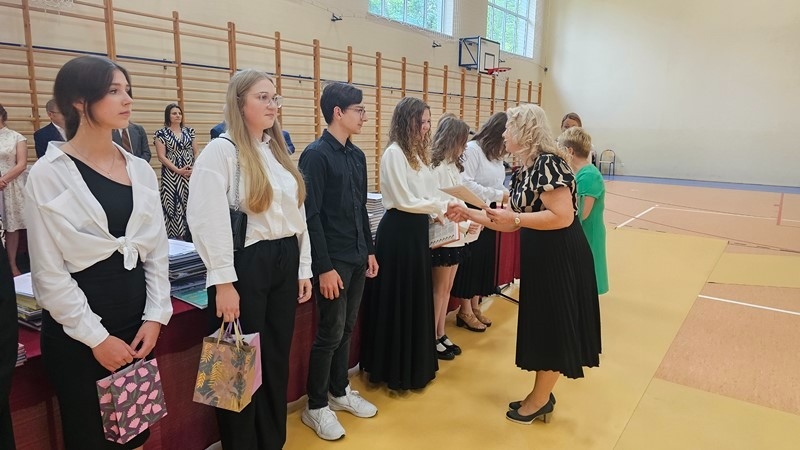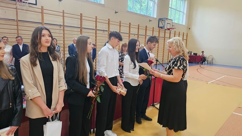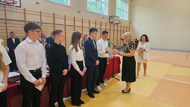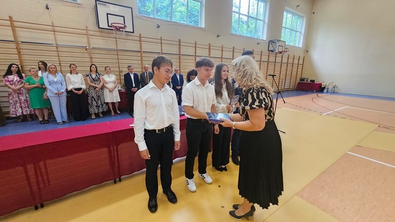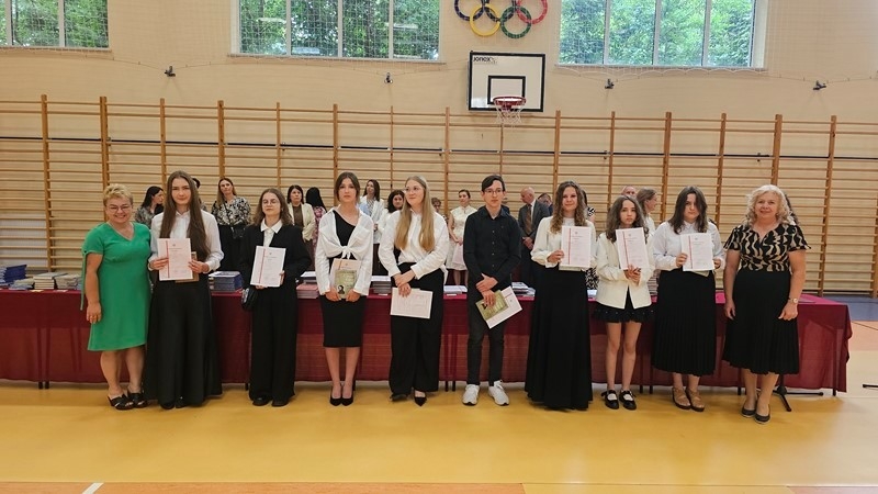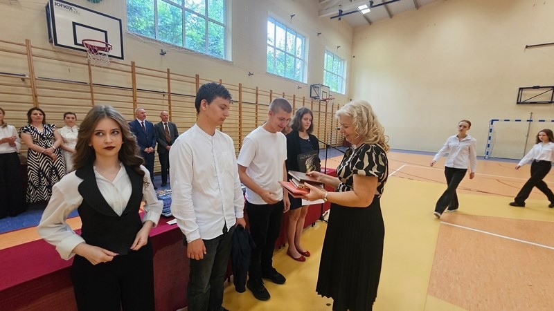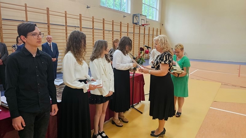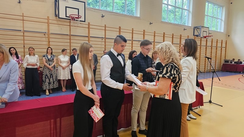 Podczas uroczystości wręczono świadectwa z wyróżnieniem oraz nagrody dla uczniów za osiągnięcia sportowe, sukcesy w konkursach, pracę w radiu szkolnym i przy nagłośnieniu uroczystości szkolnych, wzorową postawę czytelniczą, a także za 100% frekwencję w ciągu całego roku szkolnego.