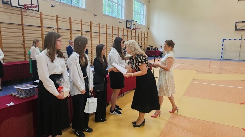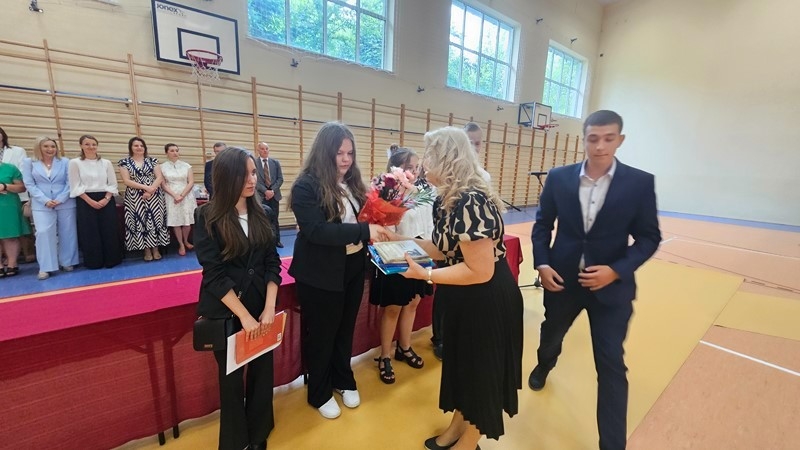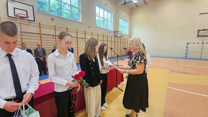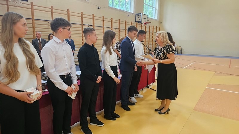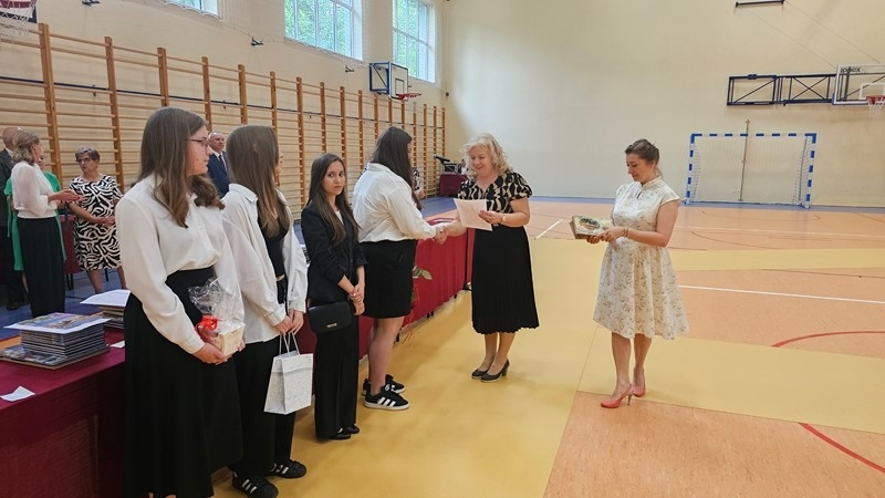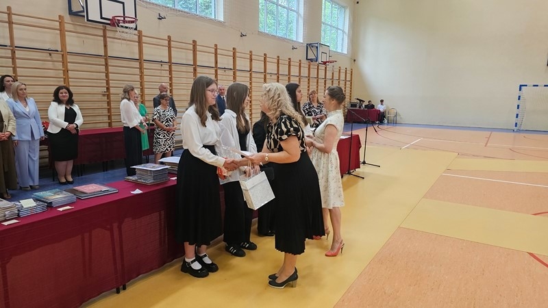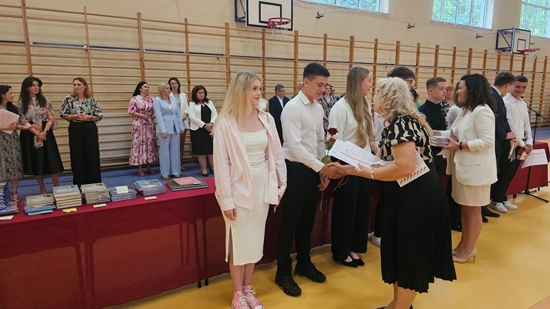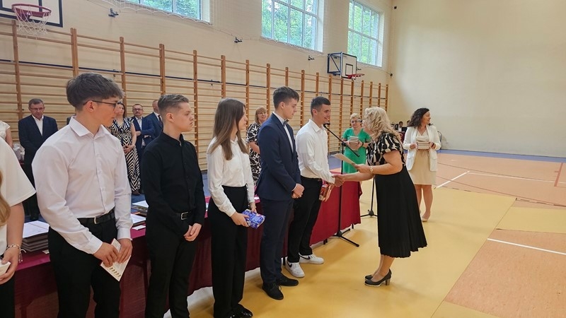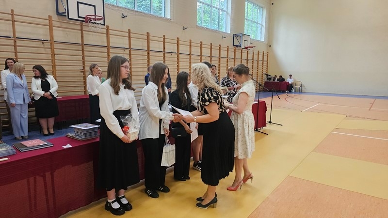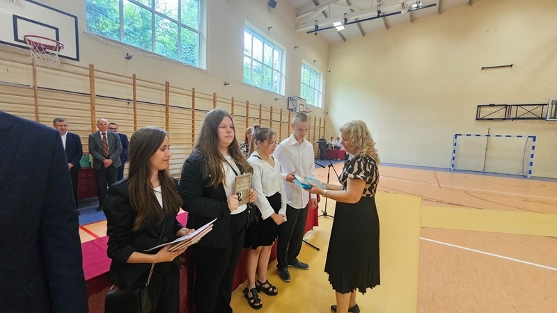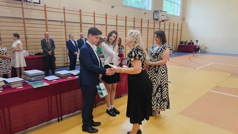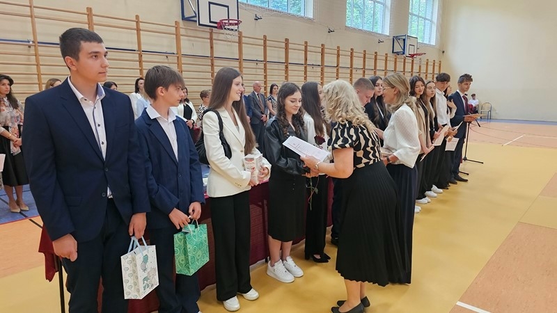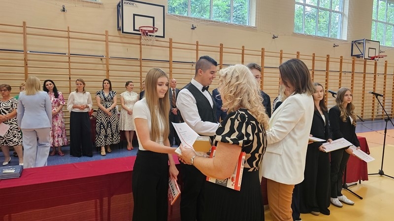 Podczas uroczystości wręczono świadectwa z wyróżnieniem oraz nagrody dla uczniów za osiągnięcia sportowe, sukcesy w konkursach, pracę w radiu szkolnym i przy nagłośnieniu uroczystości szkolnych, wzorową postawę czytelniczą, a także za 100% frekwencję w ciągu całego roku szkolnego.