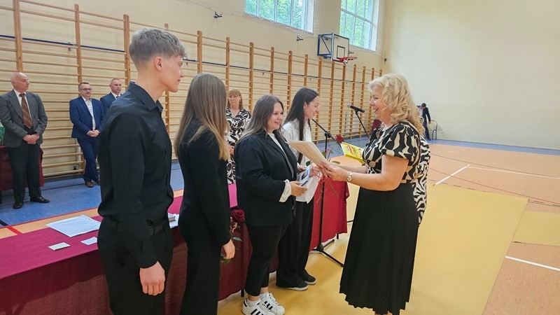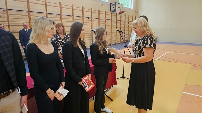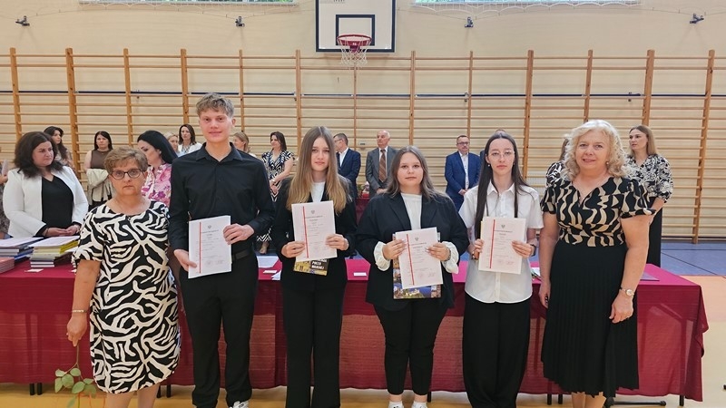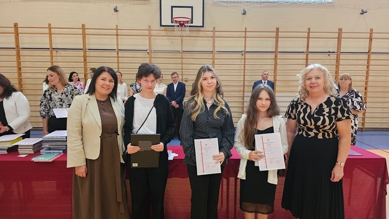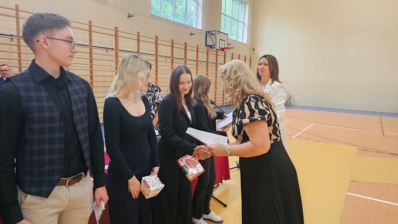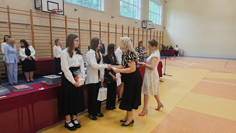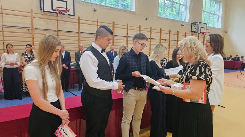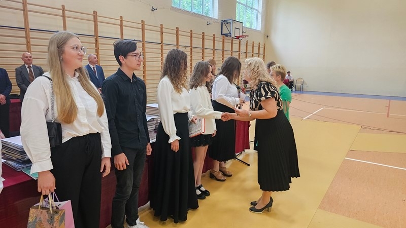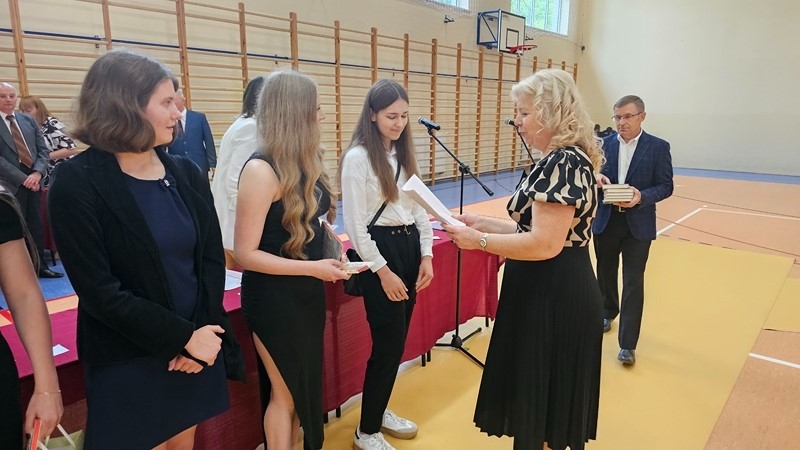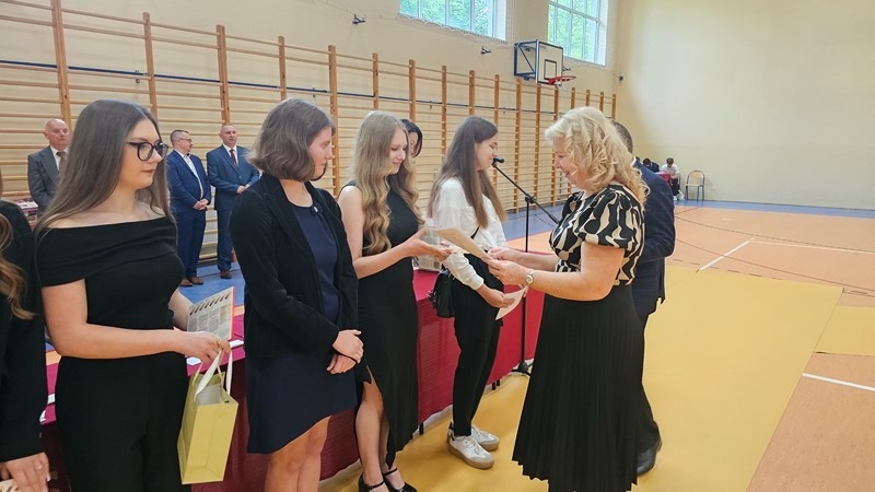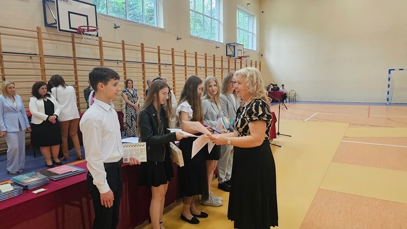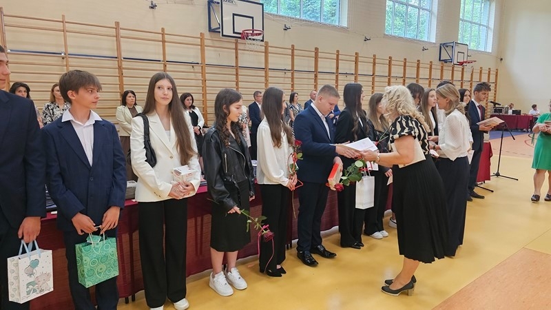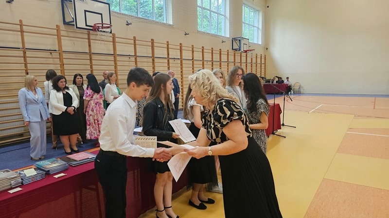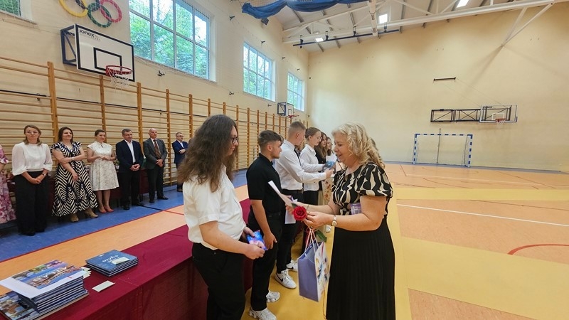Podczas uroczystości wręczono świadectwa z wyróżnieniem oraz nagrody dla uczniów za osiągnięcia sportowe, sukcesy w konkursach, pracę w radiu szkolnym i przy nagłośnieniu uroczystości szkolnych, wzorową postawę czytelniczą, a także za 100% frekwencję w ciągu całego roku szkolnego.