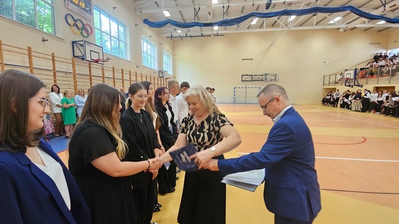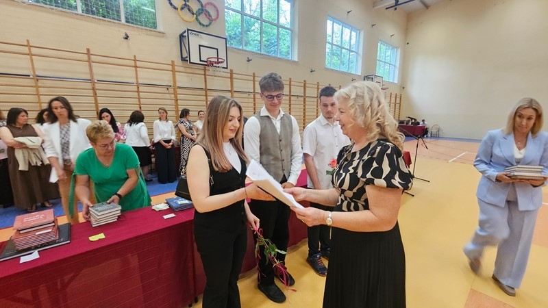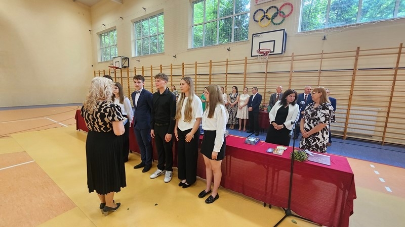 W piątek, 27 czerwca 2025 r., w I LO im. ks. Stanisława Staszica w Hrubieszowie odbyła się uroczystość zakończenia roku szkolnego 2024/2025. Wydarzenie rozpoczęło się od wprowadzenia sztandaru przez poczet szkolny i odśpiewania hymnu państwowego. Następnie wystąpiła Dyrektor szkoły, pani Alicja Borkowska, która podziękowała gronu pedagogicznemu, uczniom i rodzicom za ich całoroczny wysiłek, wytrwałość i zaangażowanie. Dyrektor pogratulowała wszystkim osiągnięć i życzyła bezpiecznych oraz satysfakcjonujących wakacji.