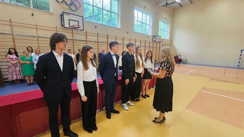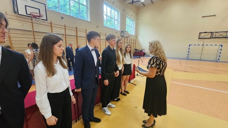 Z ogromną dumą i radością pani Dyrektor odczytała nazwiska uczniów z najwyższą średnią ocen oraz tych, którzy zostali laureatami i finalistami konkursów przedmiotowych najwyższych szczebli. Wyróżnieni uczniowie otrzymali gromkie brawa i gratulacje od całej społeczności szkolnej.