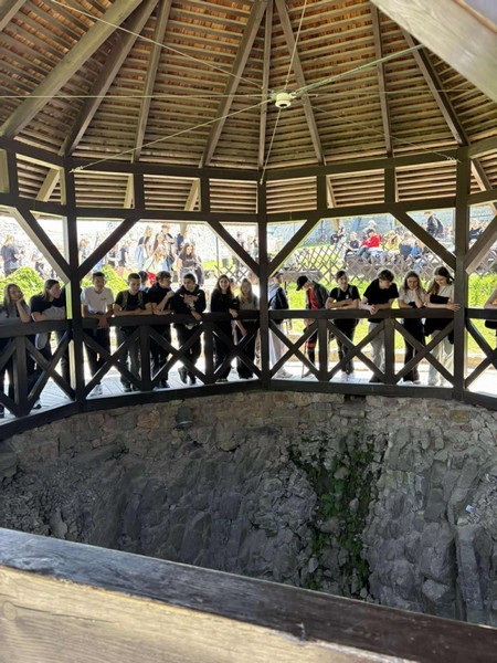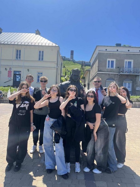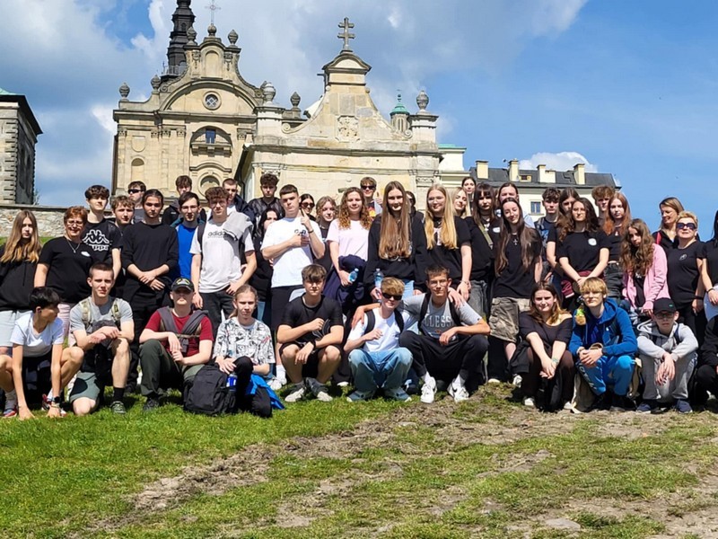 Naszą przygodę rozpoczęliśmy wcześnie rano, wyjeżdżając z Hrubieszowa w kierunku Chęcin. Pierwszym punktem programu było zwiedzanie Centrum Pamięci Kultury Żydowskiej, które przybliżyło nam historię i dziedzictwo kulturowe społeczności żydowskiej. Kolejnym etapem było "zdobycie" Zamku Królewskiego w Chęcinach – pięknie położonego obiektu, z którego rozpościerał się widok na całą okolicę. Po krótkim odpoczynku przyszedł czas na kolejne atrakcje – Karczówkę, najwyższe wzniesienie Pasma Kadzielniańskiego z pięknym klasztorem i panoramą Kielc oraz Rezerwat Geologiczny Kadzielnia, gdzie zobaczyliśmy ciekawe formacje skalne i dowiedzieliśmy się o geologicznej przeszłości regionu. Bardzo interesującym punktem programu było również Muzeum Starożytnego Hutnictwa w Nowej Słupi, w którym mogliśmy poznać techniki dawnego wytopu żelaza oraz obejrzeć rekonstrukcję osady hutniczej. Po intensywnym dniu udaliśmy się na zakwaterowanie i obiadokolację. Drugiego dnia, po śniadaniu i wykwaterowaniu, rozpoczęliśmy wędrówkę „Drogą Królewską” na Święty Krzyż – jedno z najważniejszych miejsc w całym regionie. Zwiedziliśmy klasztor oraz poznaliśmy historię relikwii Krzyża Świętego. Następnie przeszliśmy na Gołoborze – taras widokowy, z którego mogliśmy podziwiać piękno Gór Świętokrzyskich. Ostatnim punktem naszej wycieczki było zwiedzanie Muzeum Archeologicznego i Rezerwatu „Krzemionki Opatowskie”, gdzie przeszliśmy podziemną trasą o długości 500 m. Było to niesamowite doświadczenie – zobaczyć z bliska neolityczne kopalnie krzemienia pasiastego. Pełni wrażeń, zmęczeni, ale szczęśliwi, wyruszyliśmy w drogę powrotną. Przywieźliśmy ze sobą nie tylko pamiątki, ale przede wszystkim mnóstwo wspomnień, które na długo pozostaną w naszej pamięci. „Świat jest książką i ci, którzy nie podróżują, czytają tylko jedną stronę.” — św. Augustyn