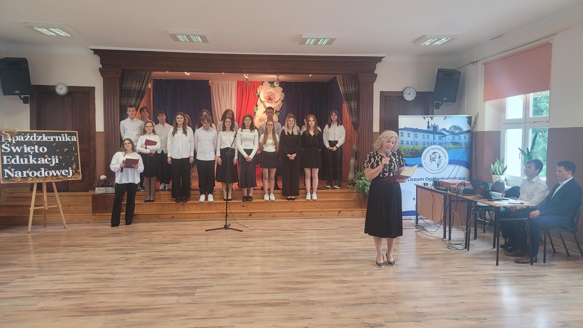 Z okazji Święta Edukacji Narodowej 11 października 2024r. w murach naszej szkoły odbyła się uroczysta akademia. Pani dyrektor Alicja Borkowska powitała zebranych nauczycieli, pracowników administarcji i obsługi oraz uczniów. Złożyła wszystkim piękne życzenia, następnie wręczyła wybranym nauczycielom nagrody Dyrektora Szkoły za wysokie osiagnięcia w pracy.