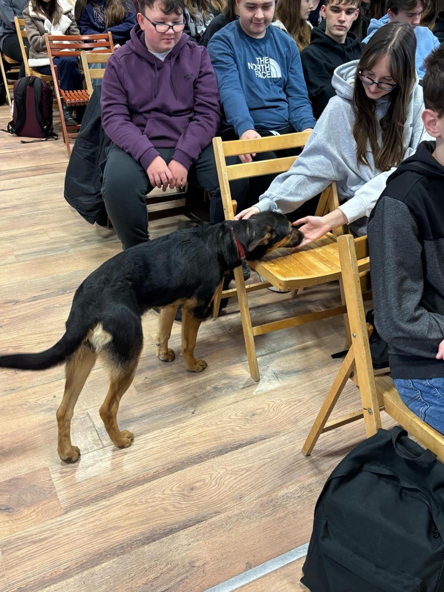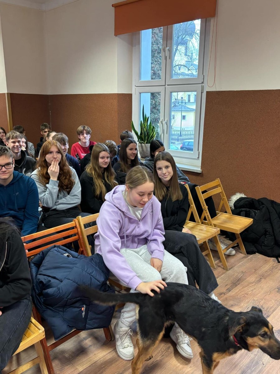 W ostatni wtorek przed feriami zimowymi uczniowie klas: 1a, 1b, 1c, 2c oraz 2e uczestniczyli w spotkaniu z Panią Emilią Piłat - przedstawicielką Fundacji Adopcje Zamość, która przybyła do nas wraz z suczką Bianką.