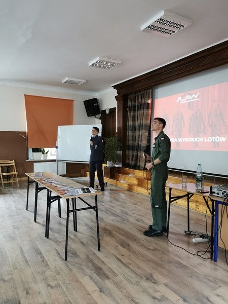 14. 03. 2025 r. młodzież I Liceum Ogólnokształcącego im. ks. Stanisława Staszica w Hrubieszowie spotkała się z absolwentami naszej szkoły, a obecnie studentami III roku Lotniczej Akademii Wojskowej w Dęblinie, st. kpr. pchor. Jakubem Drączkowskim i st. kpr. pchor. Maciejem Nowackim.