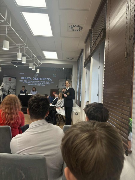 Temat spotkania brzmiał: „Rok przerwy po maturze to dobra inwestycja w rozwój młodego człowieka.” Oficjalna debata została poprzedzona szkoleniem przygotowawczym, które poprowadziła Pani Małgorzata Pitus - absolwentka naszego liceum.