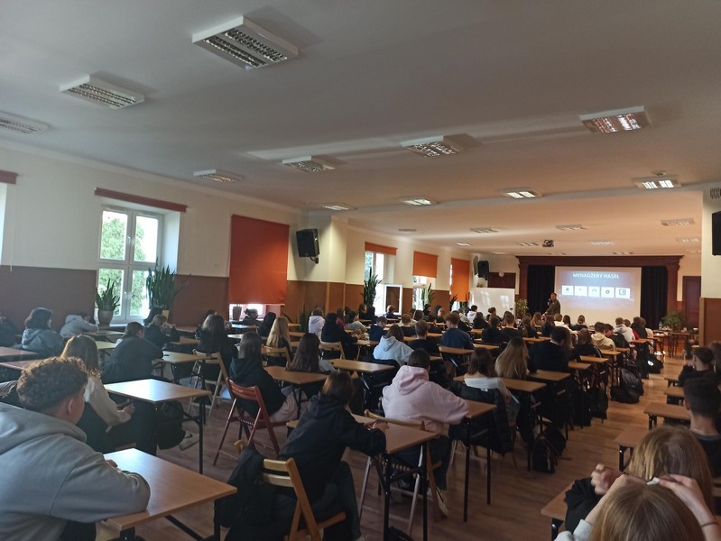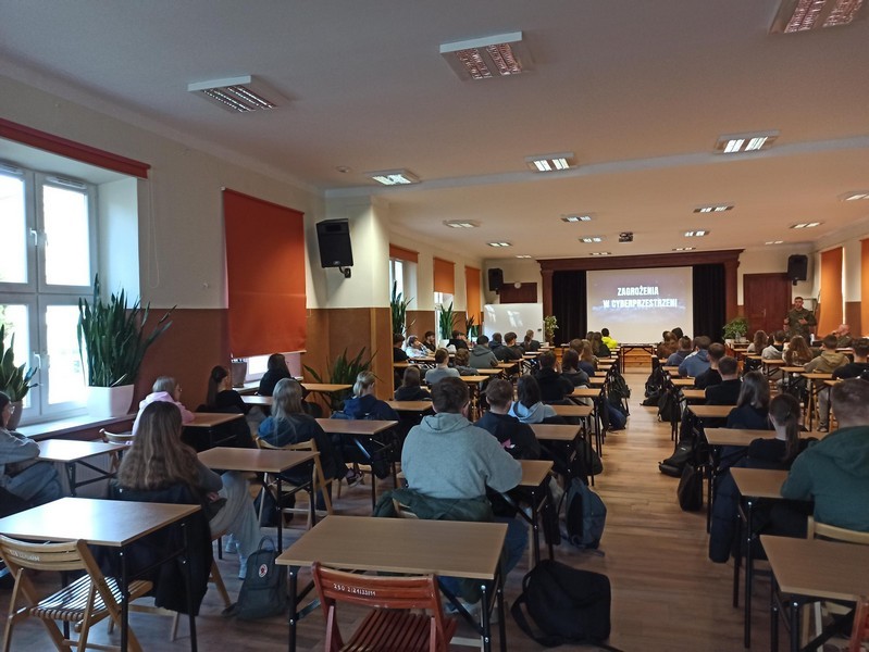 13. listopada 2025 roku w naszej szkole odbyło się wyjątkowe spotkanie edukacyjne zorganizowane przez zespół wychowawców i pedagoga szkolnego z dowódcą Jednostki Działań w Cyberprzestrzeni i podległymi jemu oficerami. Tematem przewodnim wydarzenia było cyberbezpieczeństwo, które zyskuje coraz większe znaczenie w dynamicznie rozwijającym się świecie technologii.