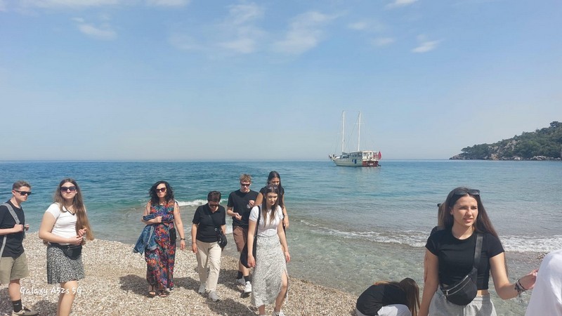 Drugim punktem dnia było malownicze miasto Kaş. Tam zobaczyliśmy starożytny amfiteatr, w którym wyjątkową atmosferę stworzył nasz kolega Jakub Radczuk, grając na gitarze. Po tym mieliśmy czas na spokojny spacer po mieście oraz zakup pamiątek
