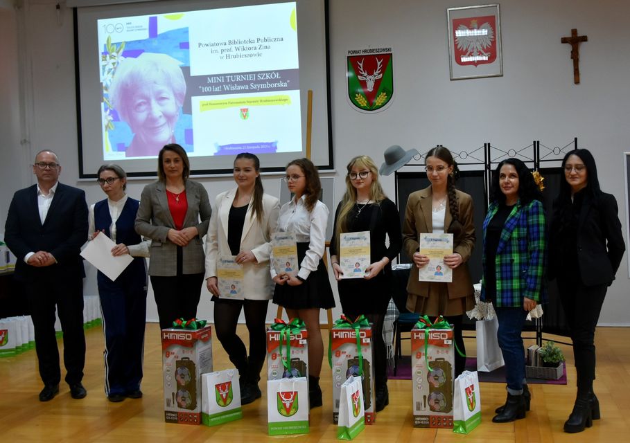 Turniej pod hasłem „100 lat! Wisława Szymborska” miał na celu popularyzację twórczości poetki w związku z uchwalonym przez Senat Rzeczypospolitej Polskiej roku 2023 – Rokiem Wisławy Szymborskiej. Rywalizacja szkół była poprzedzona spotkaniem z Michałem Rusinkiem – wieloletnim sekretarzem Wisławy Szymborskiej ,które miało miejsce 21 września w siedzibie biblioteki, podczas którego nasze uczennice usłyszały ciekawostki i anegdoty z życia Noblistki.