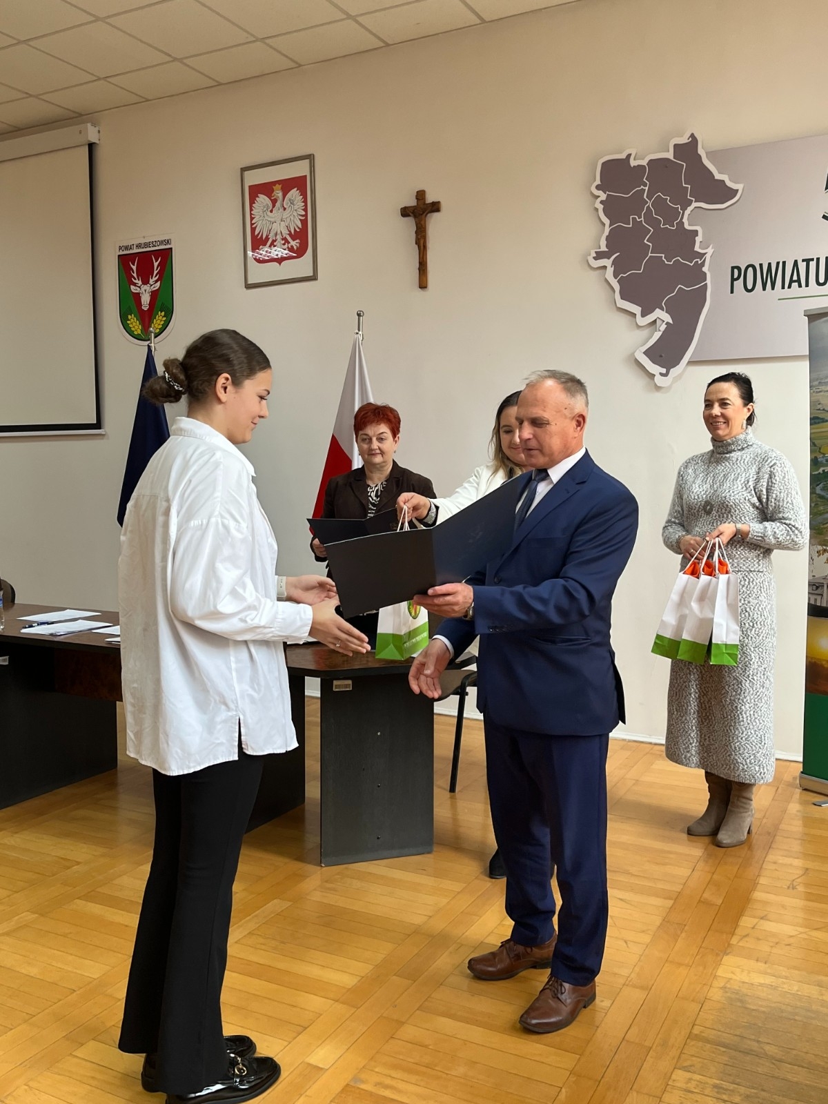 Natomiast 24 października 2024 r. w Starostwie Powiatowym w Hrubieszowie odbył się etap powiatowy Olimpiady. Laureatką etapu powiatowego, a tym samym uczestniczką etapu regionalnego została Julia Łusiak z klasy 3B.