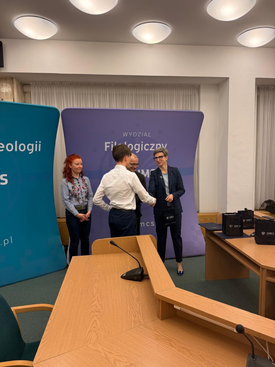 16 kwietnia 2026 r. odbyło się uroczyste wręczenie nagród przez władze Wydziału Humanistycznego UMCS laureatom w Ogólnopolskim Konkursie Językowym „4 JĘZYKI DLA LINGWISTYKI: EN-DE-FR-RU”.